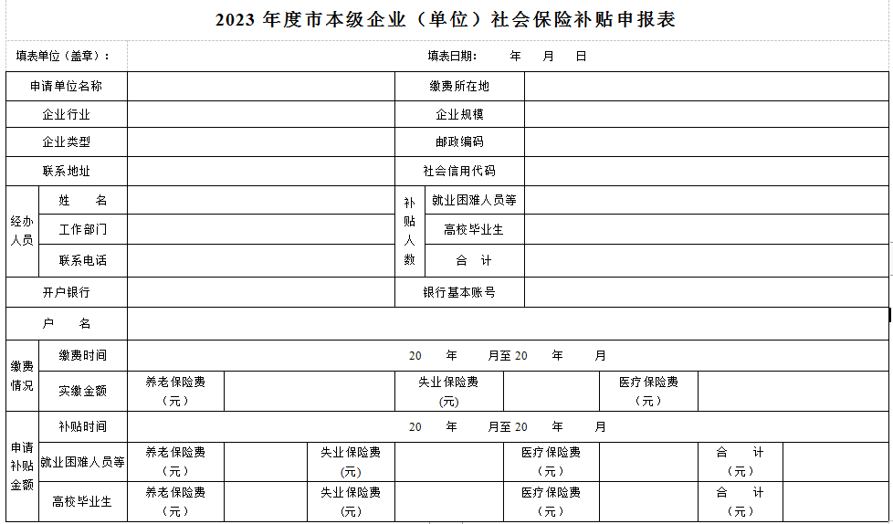 (四)《2023年度市本級企業(單位)社會保險補貼申報表》(見附件);
