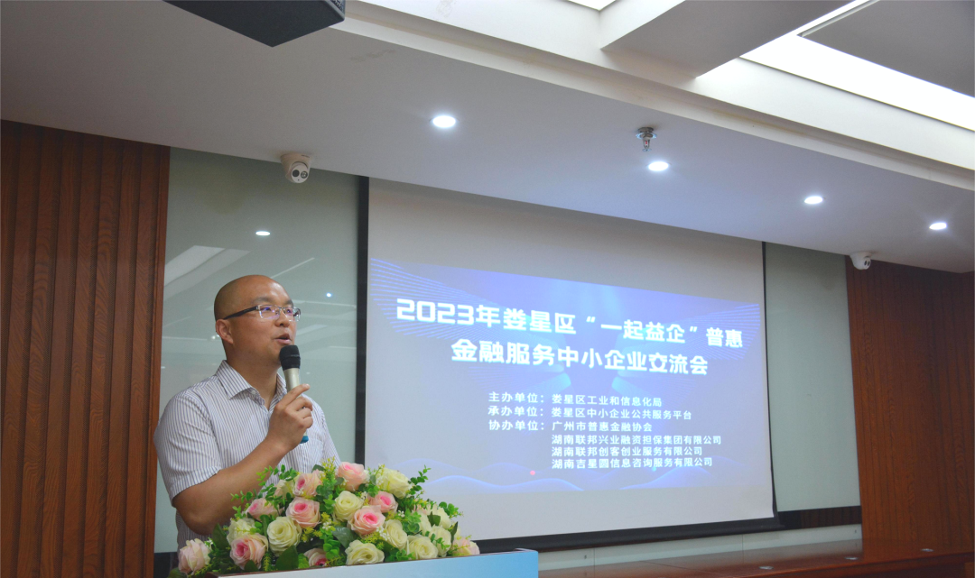 為深入貫徹落實工信部“一起益企”中小企業服務行動,進一步加強中小微企業金融基礎知識的了解,提升對金融產品和服務的認知能力,著力促進制造業和中小微企業融資,助力企業高質量發展,4月21日,由婁星區工業和信息化局主辦,婁星區中小企業公共服務平臺承辦,廣州市普惠金融協會、湖南聯邦興業融資擔保集團有限公司等服務機構協辦的2023年婁星區“一起益企”普惠金融服務中小企業交流會在吉星金融大廈六樓舉行。