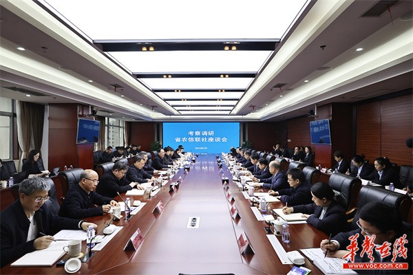 毛偉明一行走進湖南農信展廳,了解省農信聯社歷史沿革、支農支小舉措、科技賦能金融服務等情況。在隨后的座談會上,毛偉明充分肯定省農信聯社助力全省經濟社會高質量發展取得的成效。他說,近年來,全省農信系統始終緊跟省委、省政府決策部署,服務大局彰顯擔當、支農支小彰顯特色、風險管控彰顯成效、創新經營彰顯作為,為全省經濟社會發展特別是金融發展作出了積極貢獻。去年,全省農信系統存款余額1.4萬億元,貸款余額9965億元,存貸款總量、增量連續9年居全省金融機構首位;全省農信系統的鄉鎮網點覆蓋率達100%,農商銀行承擔了全省1/3的涉農貸款、1/4的小微貸款;向經營主體讓利18.7億元。