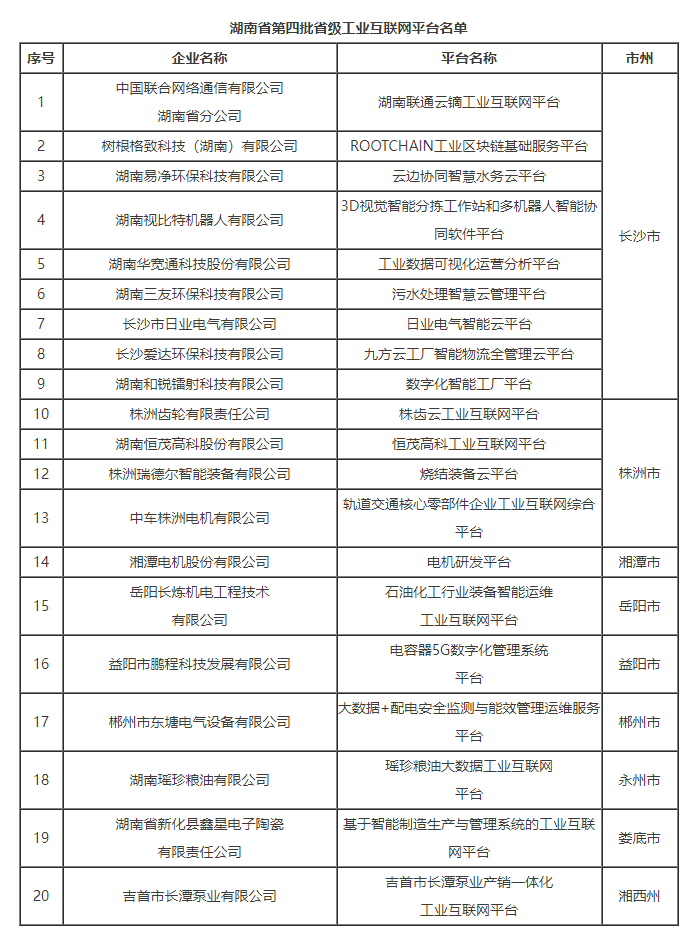 附件:湖南省第四批省級工業互聯網平臺名單