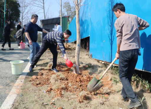 植樹現場,在和煦的春風吹拂下,大家手持鋤頭、鐵鏟,干勁十足,三五一組,鏟土造坑、培土圍堰、提水澆灌,配合默契,共栽下銀杏、柳樹、桃樹等500余棵。一株株新栽樹苗迎風挺立,呈現出勃勃生機,為初春的歸古景區增添了一抹盎然生機,為建設綠色婁底繪就了一片新綠。