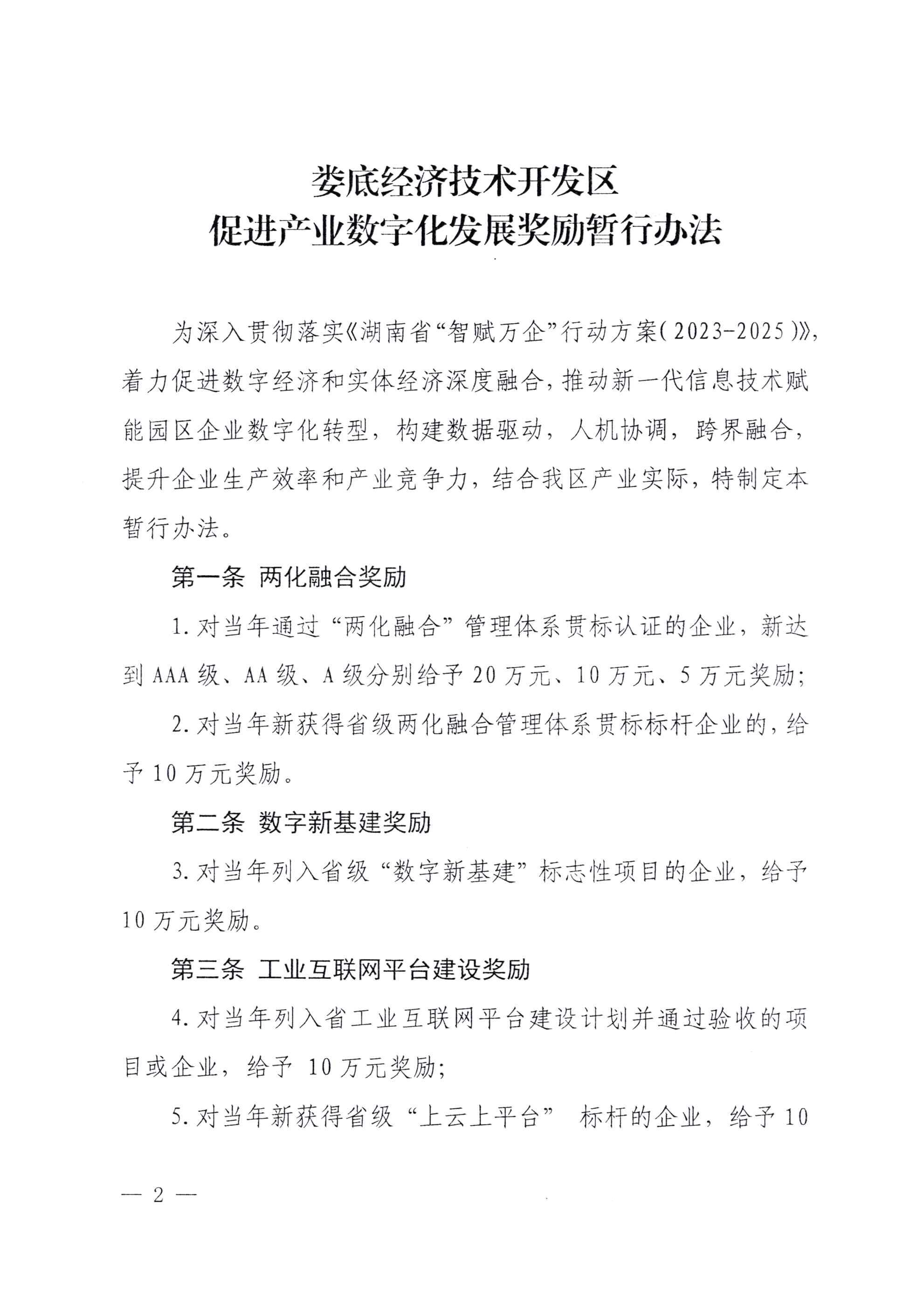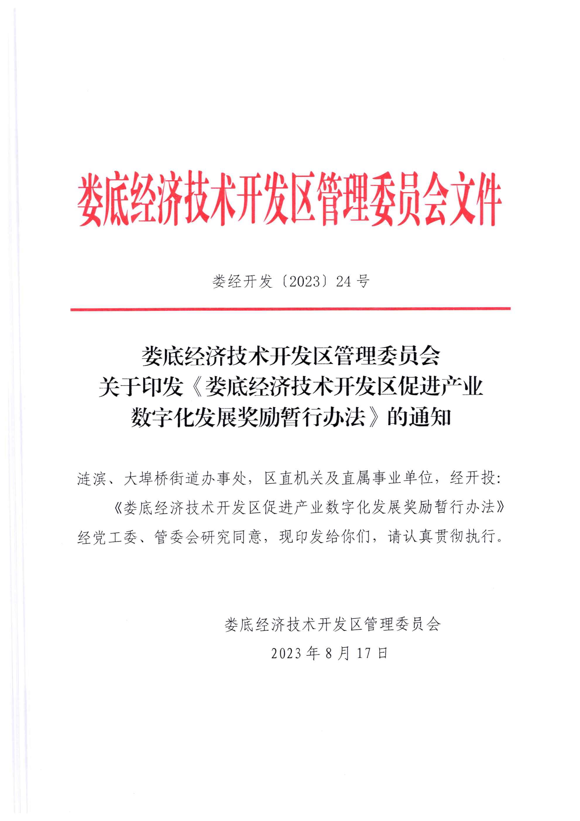 婁底經濟技術開發區管理委員會 關于印發《婁底經濟技術開發區促進產業 數字化發展獎勵暫行辦法》的通知