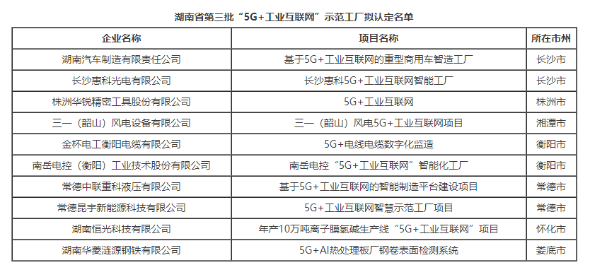 關于湖南省第三批“5G+工業互聯網”示范工廠擬認定名單的公示