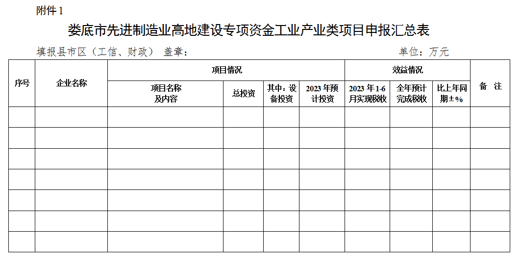 附件:1、婁底市先進制造業高地建設專項資金工業產業