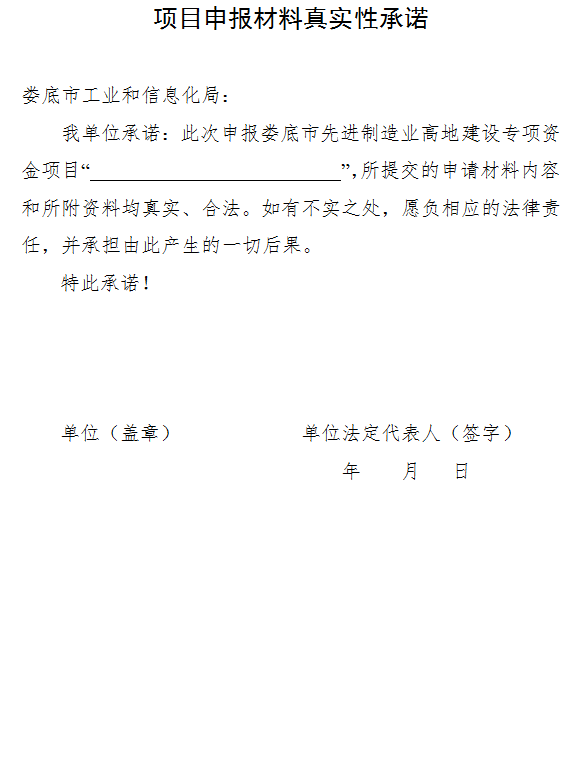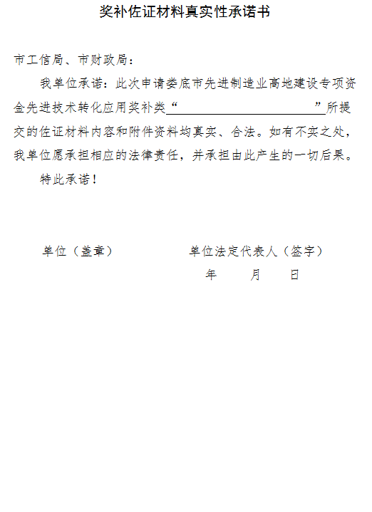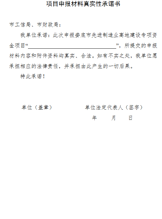 (三)其他要求。各縣市區須嚴格按照《婁底市先進制造業高地建設專項資金管理辦法》(婁財企〔2023〕147號)文件要求認真組織項目申報工作,項目申報材料必須真實齊全。嚴禁違規推薦,弄虛作假,一旦查實有資料作假行為,不予受理其上報文件,并將影響到對轄區項目的支持,同時追究申報企業、審批人員的責任。