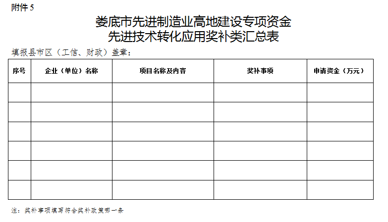 5、婁底市先進制造業高地建設專項資金先進技術