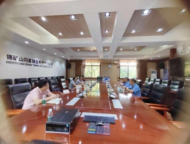 圖3 錫礦山閃星銻業(yè)領導向市企業(yè)“兩會”領導和冷水江市科工信局領導介紹企業(yè)生產經(jīng)營情況